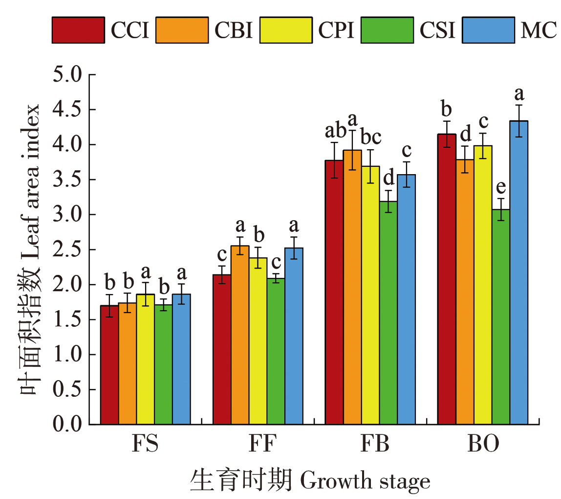 | 盛蕾期 | CCI | 5.92±0.91 a | 10.98±1.26 a | 0.43±0.05 ab | 17.32±2.19 b |